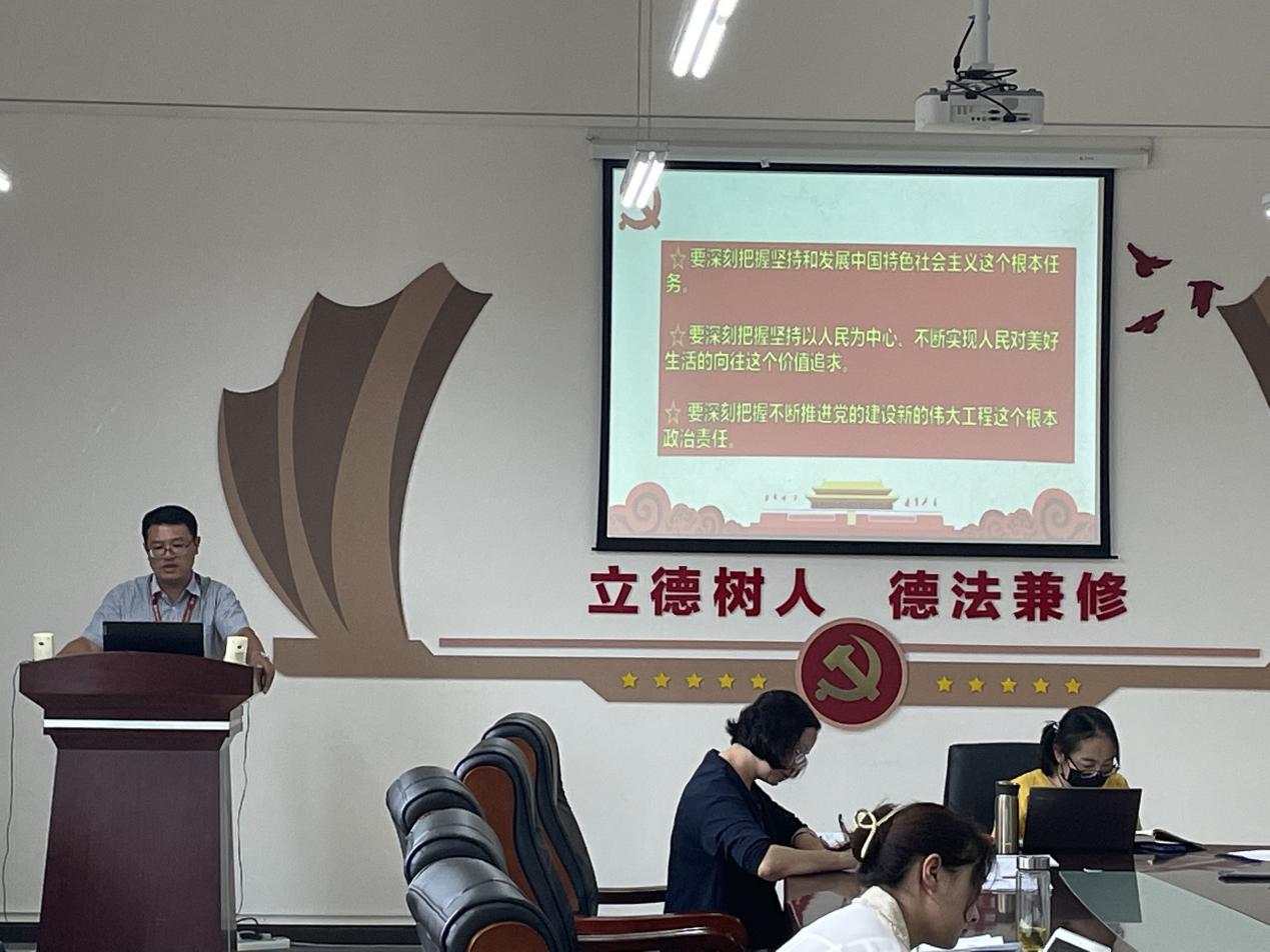 9月7日下午,法学院党委书记詹伟在文德楼310会议室作新利网页版_新利(中国)总书记“七一”重要讲话精神宣讲。全院各基层党支部书记,全体专职教师及行政工作人员,各年级研究生、本科生党员和积极分子代表参加活动。