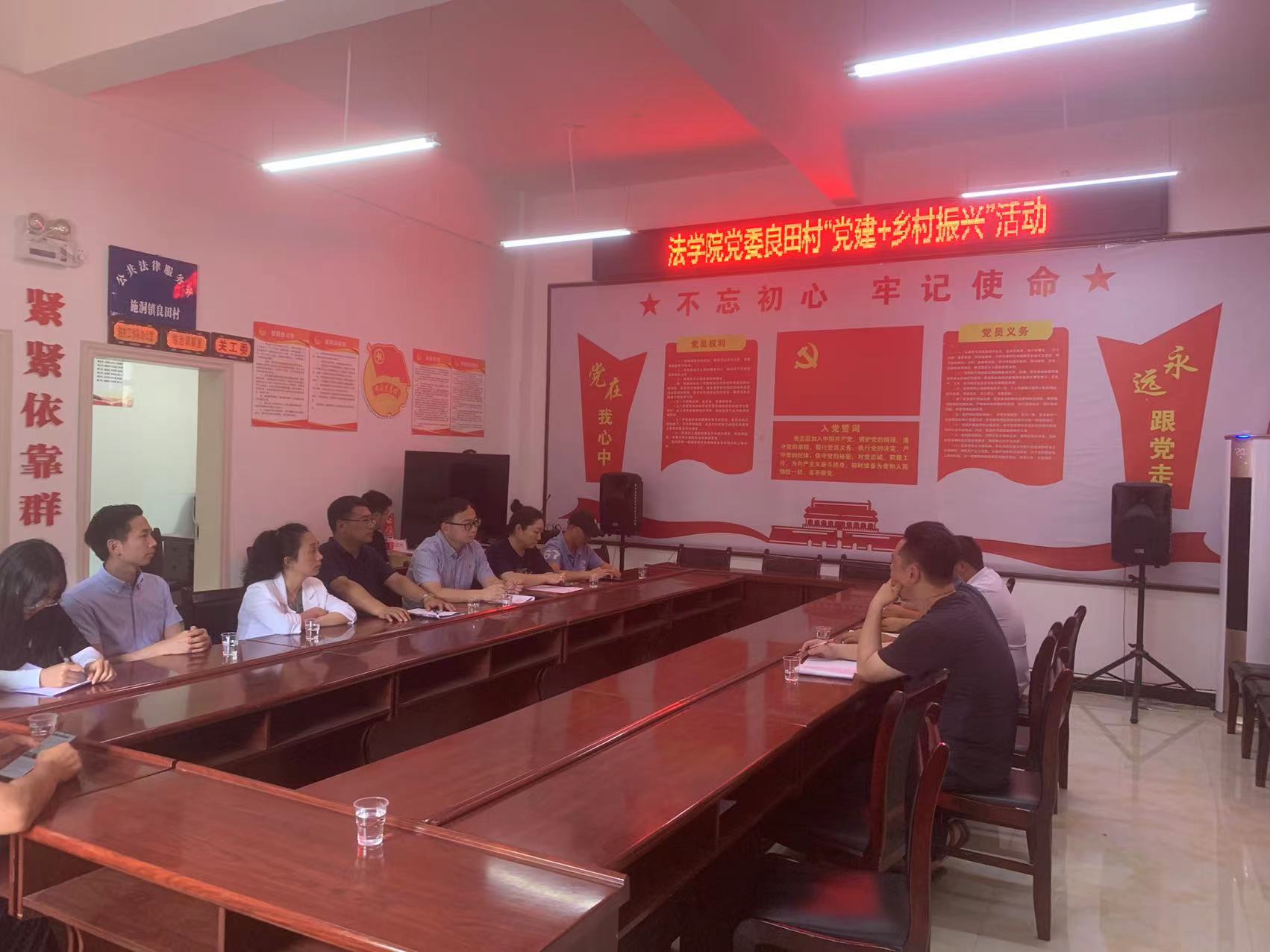 在施洞镇良田村,法学院与良田村驻村干部、村委会班子成员、村民代表等进行了沟通和交流,詹伟表示法学院会继续以贵州财经大学法律咨询服务点为载体,以“党建+法律+”的方式常态化为良田村乃至施洞镇提供法律援助、普法宣传、法律调解等服务,助力良田村乡村振兴。在交流过程中,法学院副教授杨森井对良田村在乡村振兴过程中的痛点和难点给出了自己的意见和看法,并以《深入贯彻新利网页版_新利(中国)法治思想,扎实开展民法典学习宣传》为题向出席会议的人员进行了宣讲。