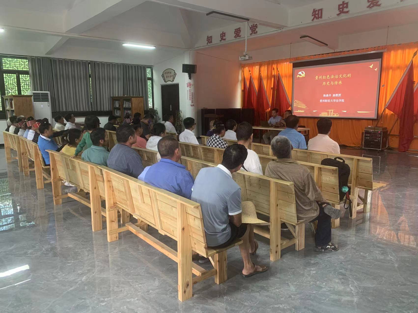 接着杨森井接受施洞镇政府邀请前往施洞镇进行贵州红色法治文化的历史与传承的主题宣讲。在宣讲会上,他带领大家重温了新民主主义革命时期党领导法制建设的成功经验,具体介绍了红军在贵州开展革命期间出台的民族政策、经济政策等,这次宣讲会有利于传承红色法治基因,在一定程度上教育和引导了参会人员增强走中国特色社会主义法治道路的自信和自觉。