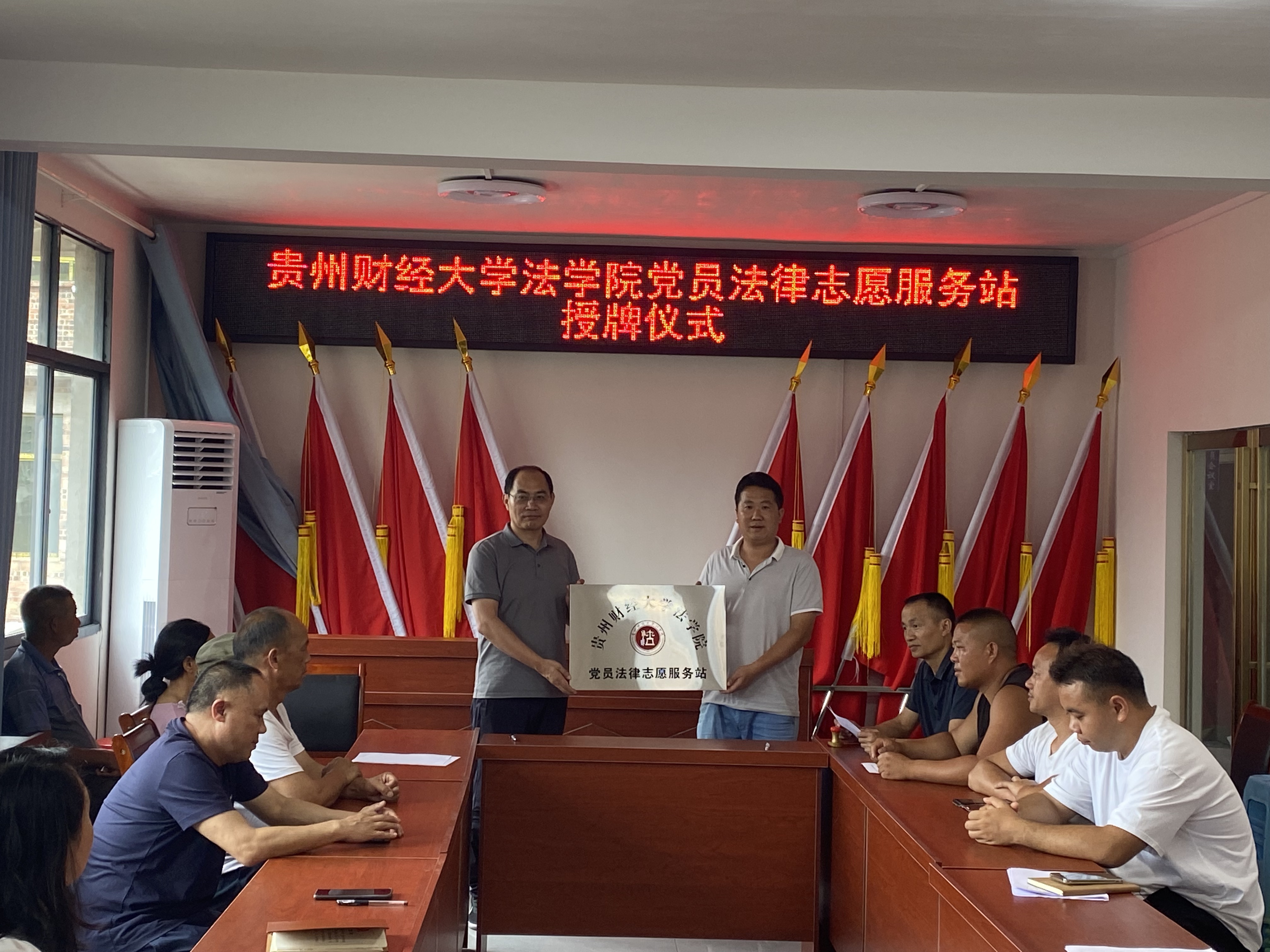 活动伊始,法学院党委与清江村村支两委、包括我院驻清江村第一书记李玉兰在内的驻村工作队开展座谈。清江村村支书陈世刚对法学院的到来表示欢迎,他介绍了清江村的村情民情等基本情况,希望法学院在民宿开发、苗族传统文化研学展销基地打造等方面给予支持。邵新顺表示将强化党建引领,与清江村党支部建立结对共建机制,发挥各自优势双向赋能,同时发挥法学院智力优势,为清江村的乡村振兴工作提供新思路、新方法。随后邵新顺与陈世刚共同为新利网页版_新利(中国)党员法律志愿服务站挂牌。曹务坤和陈世刚则围绕村民比较关心的婚姻家庭问题开展了题为《守护家庭权益 助力乡村振兴》的理论宣传二人讲,并现场回答了村民的相关困惑。曹务坤作为法学院教工第二党支部书记与陈世刚签署了党支部结对共建协议,两个支部将在支部建设、产业发展、法律援助与调解等方面开展合作。
