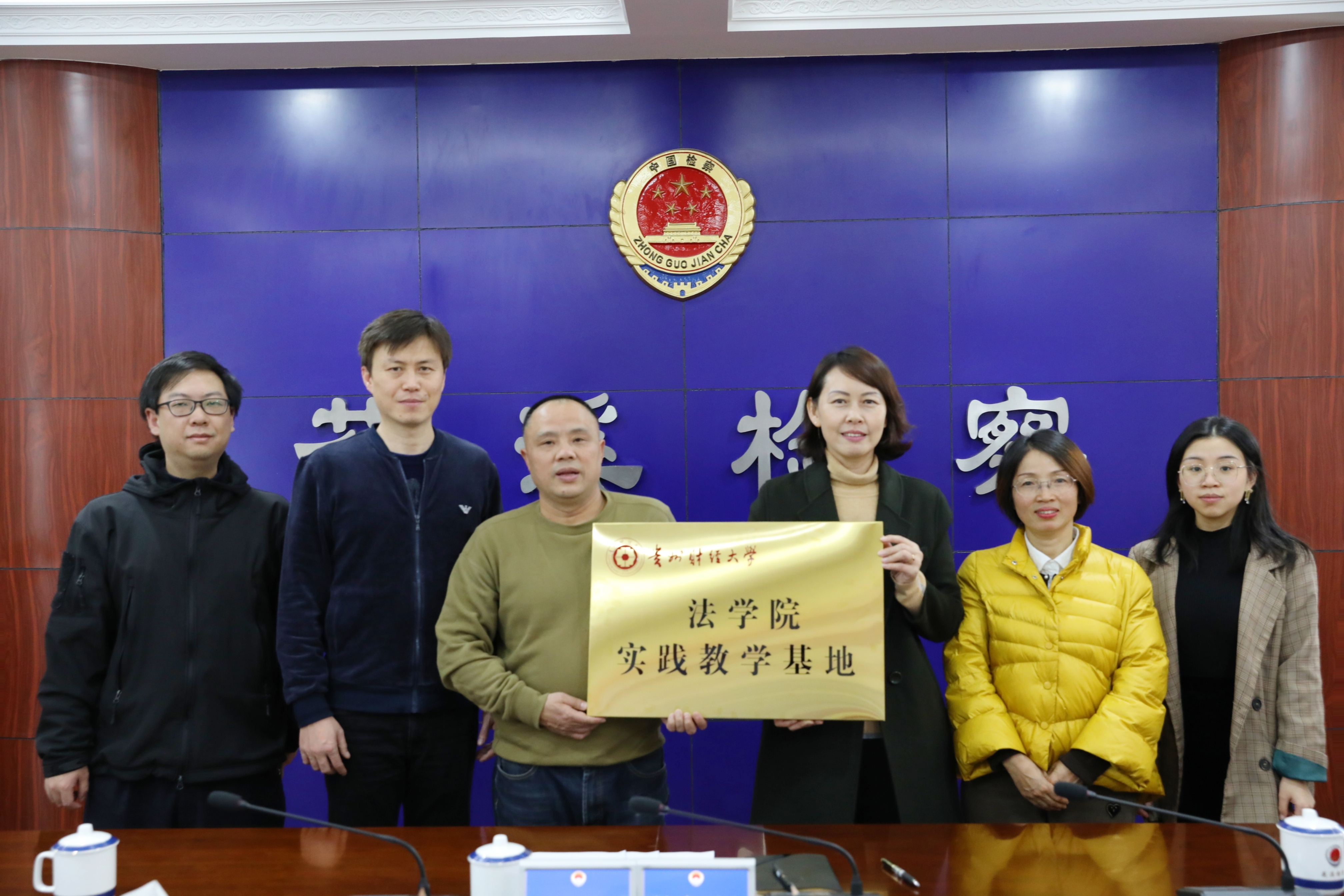 座谈会后,曹务坤与范如松分别代表法学院与贵阳市花溪区人民检察院签署了实践教学基地协议并举行了授牌仪式。此次活动为校检双方协同培养法律人才、助力地区法治建设提供了良好的平台,为加强法学教育的应用性、实践性技能创造了条件。