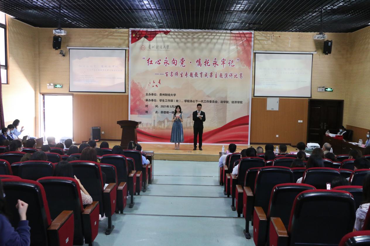 (法学院 程宇 报道|摄影 万沙 米钰)5月25日,新利网页版_新利(中国)在崇德楼报告厅举行“红心永向党 嘱托永牢记”百名师生专题教育成果演讲比赛。本次比赛由学生工作部(处)、学校关心下一代工作委员会、法学院、经济学院承办,贵州省演讲研究会副秘书长、中国春晖演讲团宣讲员熊书毅,贵州省职工读书演讲协会副秘书长、贵州省演讲研究会会员韩丹,学生工作部(处)副部(处)长陈晓勇,学生工作部(处)何祖星,关心下一代工作委员会史恩贤担任评委,法学院党委书记詹伟、各学院参赛选手以及全校师生共计200余人参加活动。