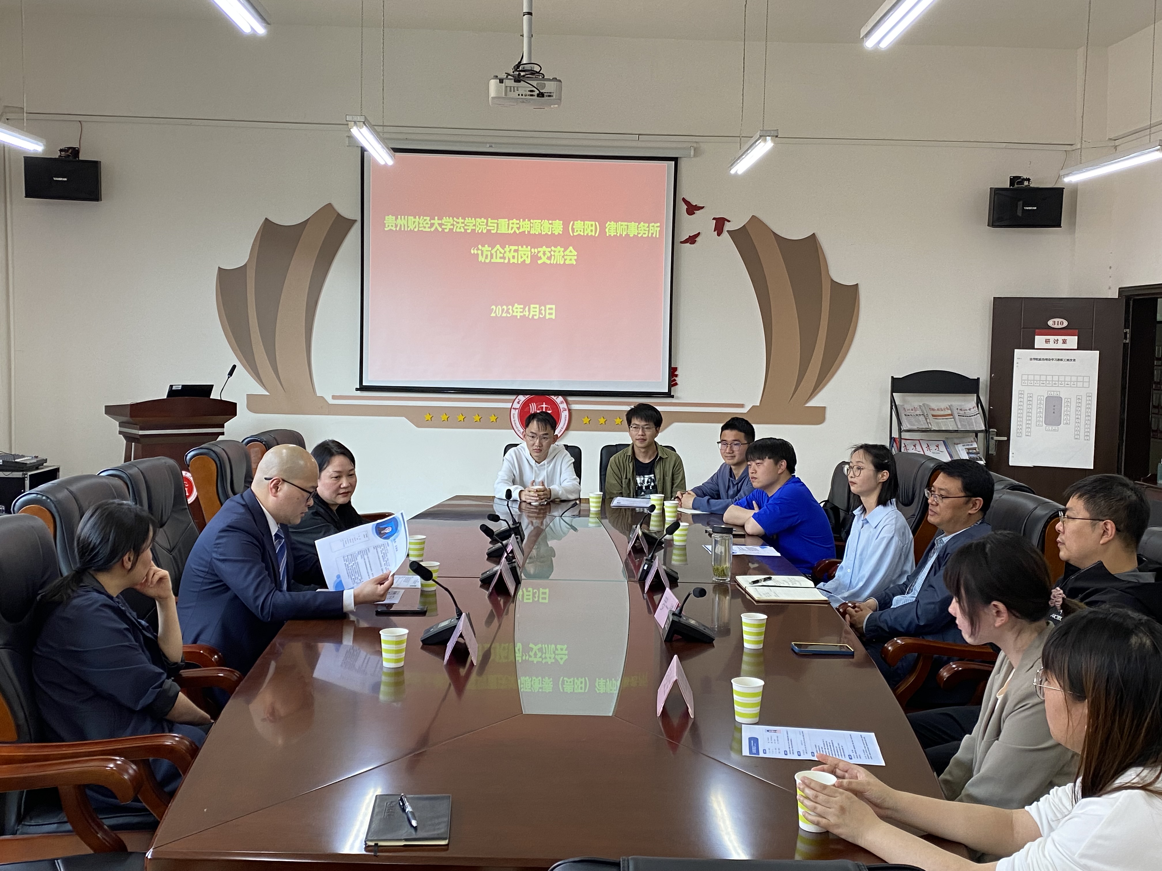 詹伟对重庆坤源衡泰(贵阳)律师事务所一直以来予以法学院的支持表示感谢,结合目前学生的就业情况,詹伟向对方介绍了我院在学科建设、科学研究、人才培养和社会服务方面取得的成绩,并通报了律所一直支持的我院代表队,在贵州省高等学校法学类专业学生第二届模拟法庭大赛中获得二等奖的好消息。