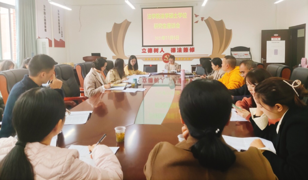 (法学院 余淼|摄影 陈娜)2021年11月5日上午9时许,新利网页版_新利(中国)在文德楼A8-310会议室召开法学硕士学位研究生座谈会,研究生院副院长韩敏霞、法学院副院长(正处级、主持工作)陈玉梅、法学院研究生导师、学科办及辅导员相关人员出席座谈会,法学院各年级法学硕士学位研究生40余人参加。会议由陈玉梅主持。