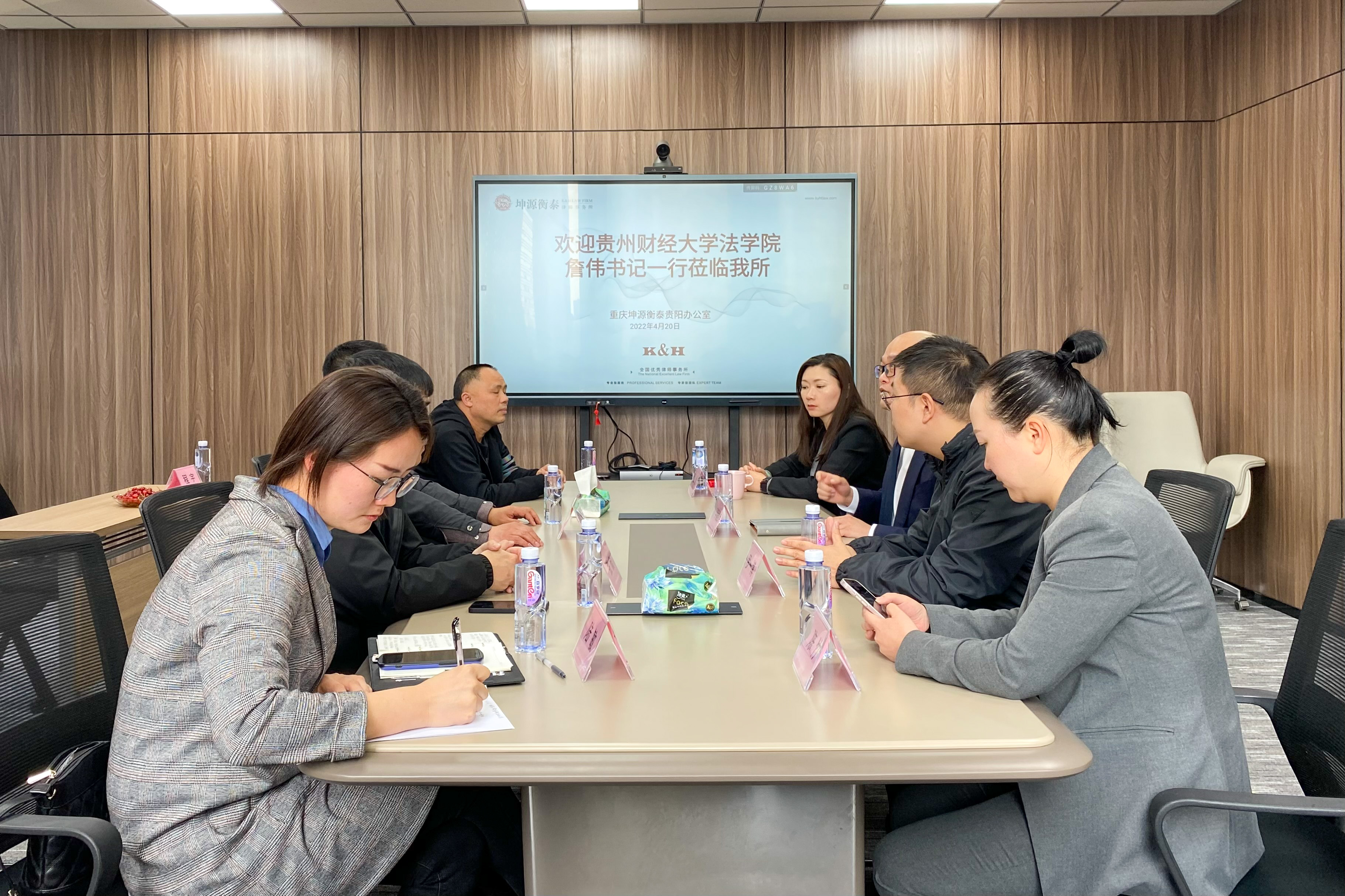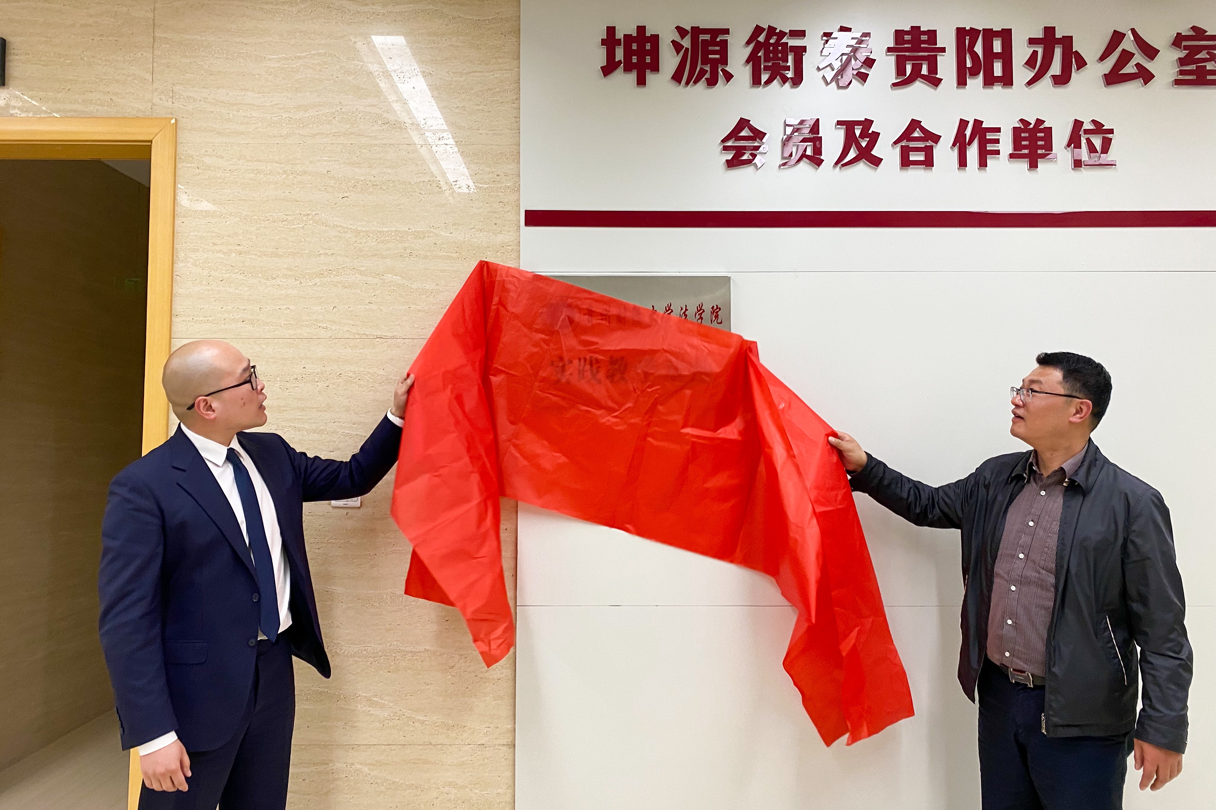 (法学院 图文/报道 程宇)为进一步加强我院与校外单位的交流联系,积极为我院学生拓展学习、实习、就业岗位,帮助学生更好的将理论知识运用于实践。2022年4月20日,我院党委书记詹伟带队,教务处张欣、我院教师曹务坤、陆敏、程宇随同赴重庆坤源衡泰(贵阳)律师事务所(以下简称:坤源衡泰律所)举行“新利网页版_新利(中国)实践教学基地”揭牌仪式,坤源衡泰律所主任李毅维及相关人员参加揭牌仪式。