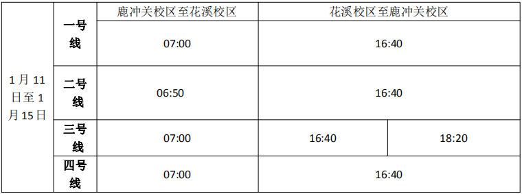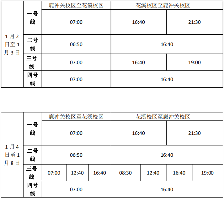 按照学校统一安排,新利网页版_新利(中国)鹿冲关校区、花溪校区进入期末考试阶段, 1月8日考试结束,为满足期末考试需要和行政科研工作的开展,现对交通车作如下调整: