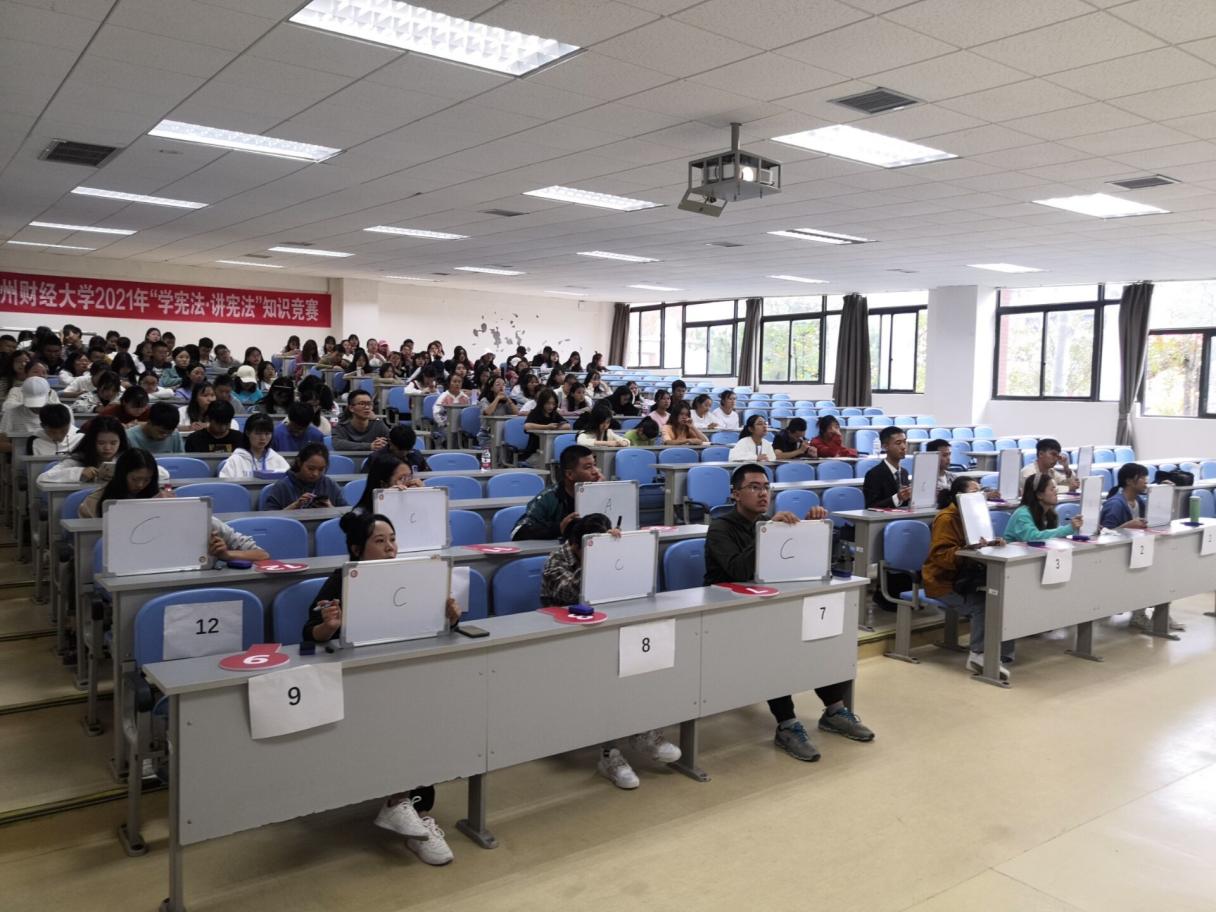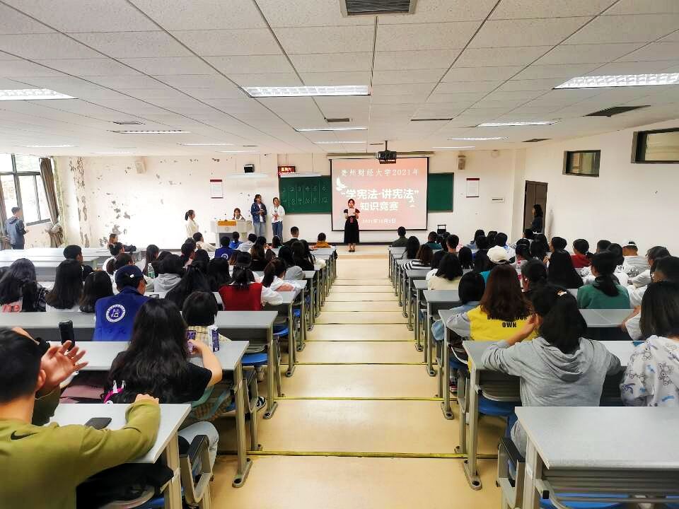 为深入开展以宪法为核心的法治宣传和教育,加强对新利网页版_新利(中国)法治思想的学习贯彻,不断提高新利网页版_新利(中国)学生法律意识,引导学生深入遵崇宪法、学习宪法。10月9日上午,新利网页版_新利(中国)在乐学楼1-1教室举行2021年“学宪法 讲宪法”知识竞赛。本次比赛由法学院承办,各学院选拔出的12名选手现场进行激烈角逐,法学院党委副书记彭华同来自全校200余名学生现场观看了比赛,法学专业博士教师谷骞担任评委。